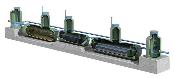 В состав ливневой очистной системы из стеклопластика входит следующее оборудование для очистки стоков: