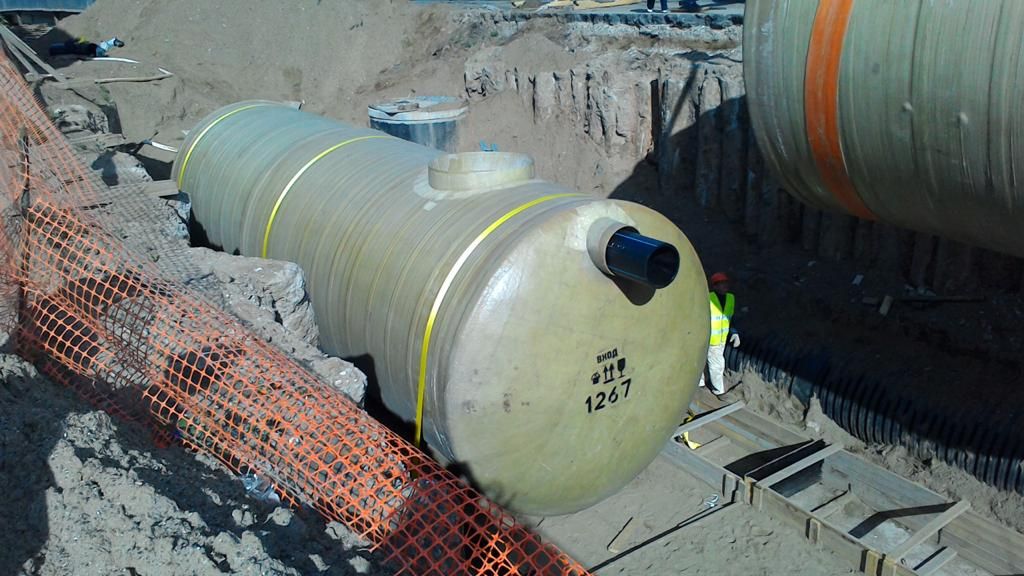В стандартный комплект стеклопластиковой емкости включаются следующие элементы: подводящие и отводящие трубы, специальное оборудование, внутренняя обвязка, площадка обслуживания и люк.